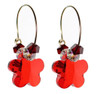 14k Gold Filled Swarovski Crystal Red Flower Hoop Earrings