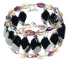 This new cuff bracelet has black geometric crystal as the focal area with pops of color running throughout.