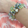 This Bracelet incorporates beautiful and very rare Swarovski Crystals... and what's great especially for anyone who needs or wants a bracelet that goes on easily this is perfect because there is no clasp it simply just coils around your wrist. The bracelet keeps its form by a Memory wire that wraps around the wrist up to 3 times. So what you get is an easy to wear sparkling bracelet that is quite substantial with all the overlapping strands.