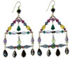 Large sparkly chandelier earrings will make a big splash in any room. This pair of colorful earrings have a beautiful shape and are one of a kind. Crystal drops hang in the center os each tier while the bottom is adorned with special effect swarovski crystal.