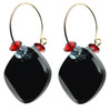 Jet Black Square Swarovski Crystal with Rare Aqua and Siam Red Swarovski Discs • Fine metal ear wire 14K gold filled • Navajo Collection