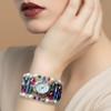 Jewel Toned Multi Colored Swarovski Crystal Watch Cuff Bracelet features Sterling Silver