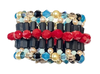This rock star style cuff bracelet has cherry read crystal spikes protruding from the center row. This added element makes for a fun look that would pair well with any outfit from casual to formal.