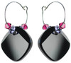 The 18mm Black Swarovski Crystal makes a large statement in a small earring. These Hoop Earrings are lightweight for everyday wear. Black with a touch of Ruby R…