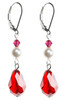 Sterling Silver Red Swarovski Crystal and Pearl Earrings