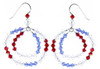 Sterling silver red, white and blue Swarovski crystal double hoop earrings
