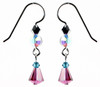 Sterling Silver Swarovski Crystal Fuchsia Simple Drop Earrings - Carnival