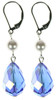 These handcrafted earrings feature luminous sapphire blue Swarovski crystal pearls paired with rare 18mm vintage Swarovski crystal drops. Set on sterling silver…