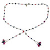 This beautiful design is a style of necklace called a tie necklace. Without the use of clasps you simply fold the two ends over each other in the front, creating a cluster of crystals that is adjustable. Each necklace is made with rare and discontinued Swarovski crystals